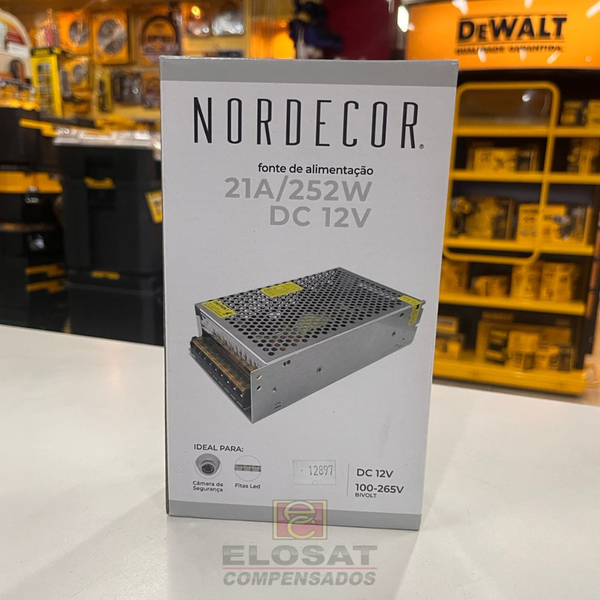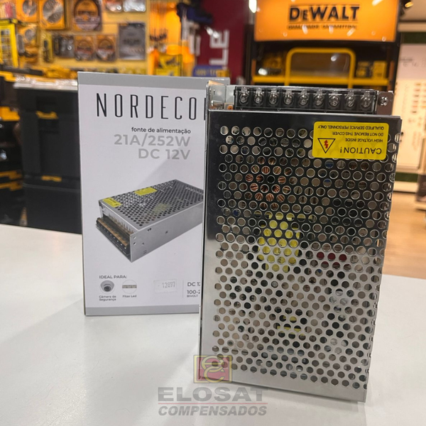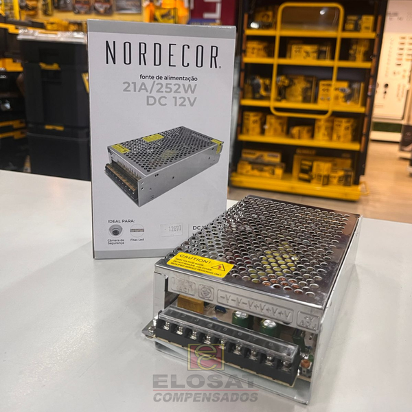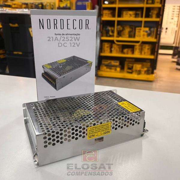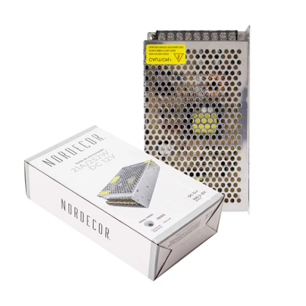 A Fonte Driver Chaveada 21A 252W 12V - Nordecor 7026 trabalha diretamente com fitas de LED.