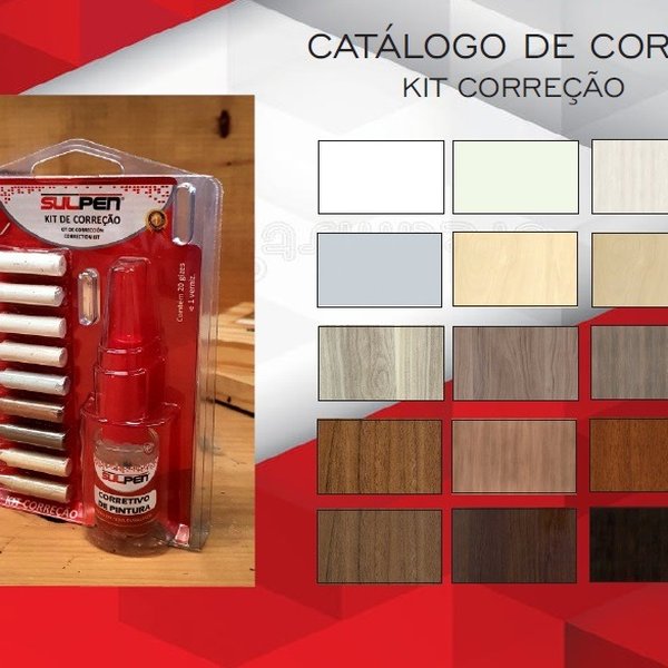 O Kit Correção para MDF com 20 Gizes e Verniz Sulpen é ideal para correção de riscos e arranhões em MDF e MDP.